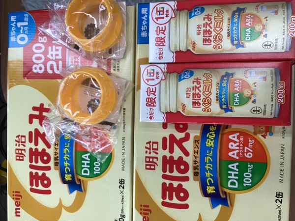 「ほほえみ2缶パックらくらくミルクアタッチメント付」をいただきました。